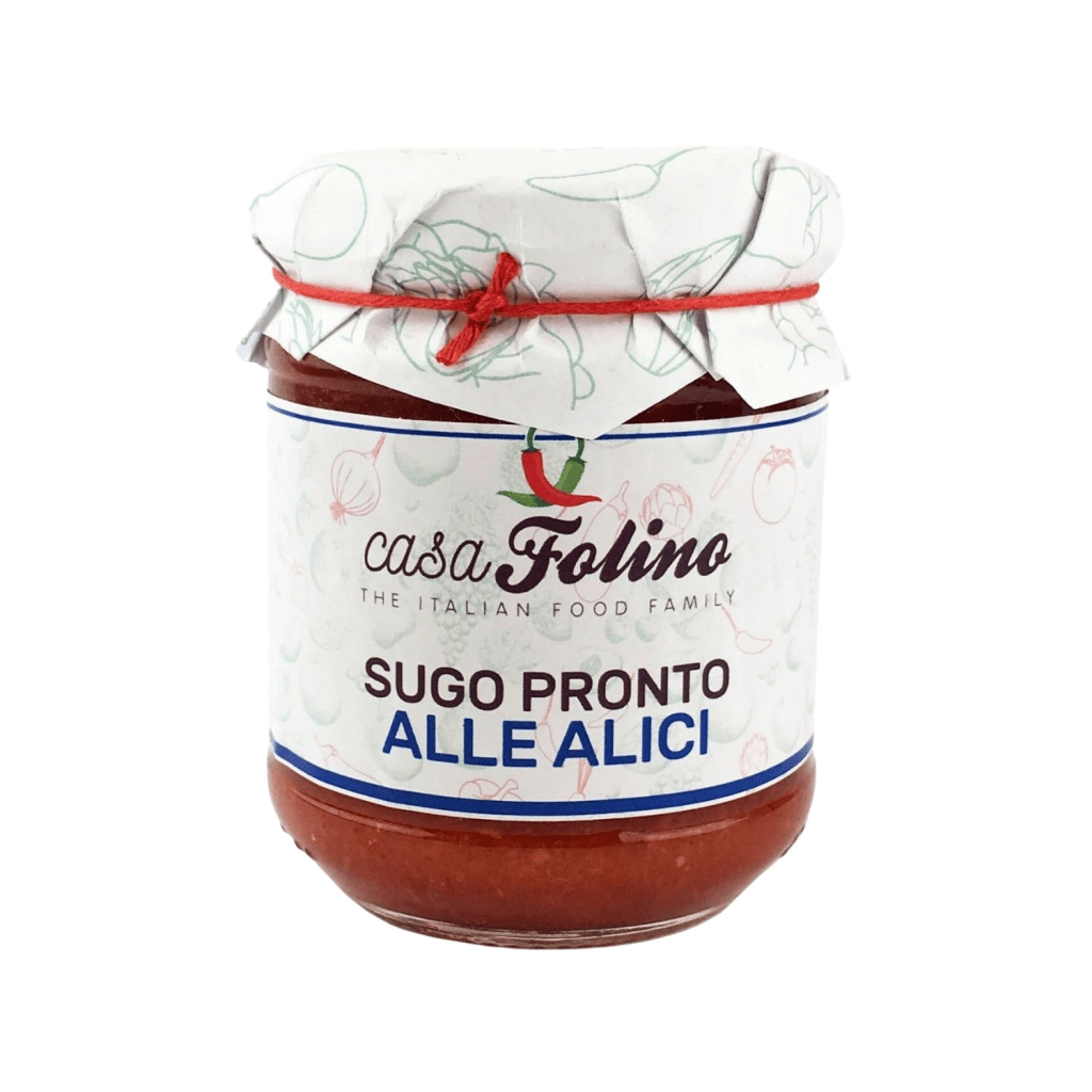 Il sugo pronto calabrese alle alici è un condimento per primi piatti realizzato seguendo antiche ricette della tradizione, in grado di valorizzare ed esaltare il gusto di ogni singolo ingrediente utilizzato. Le alici pescate nel Mediterraneo vengono selezionate con cura e unite alla polpa di pomodoro, esaltando il tutto con olio extravergine di oliva, sale e aromi, come il pepe nero. E’ ideale per chi non rinuncia a portare in tavola sapori e tradizioni e ama gustare un buon piatto di pasta, saporito e sfizioso.