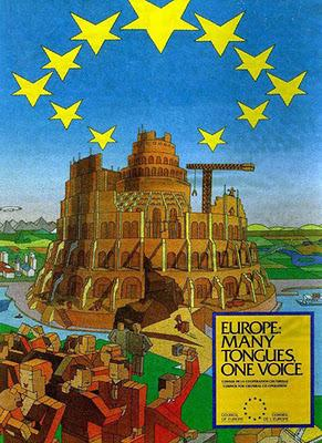 Torre di Babilonia di NimrodManifesto dell’Unione Europea (in seguito ritirato) dal titolo: “Molte lingue, una voce” chiaramente ispirato alla Torre di Babele Edificio del Parlamento europeo a Strasburgo che richiama l’architettura della Torre di BabeleI Kazari discendenti del re di Babilonia Nimrod vogliono unirsi alla “Torre di Babele” Unione Europea