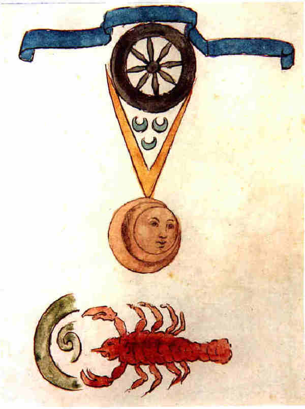 Nella tavola in questione vediamo il segno del Cancro, una galassia a spirale e una cintura di stelle. In alto tre lune e un volto umano che compare in un disco solare o forse lunare.